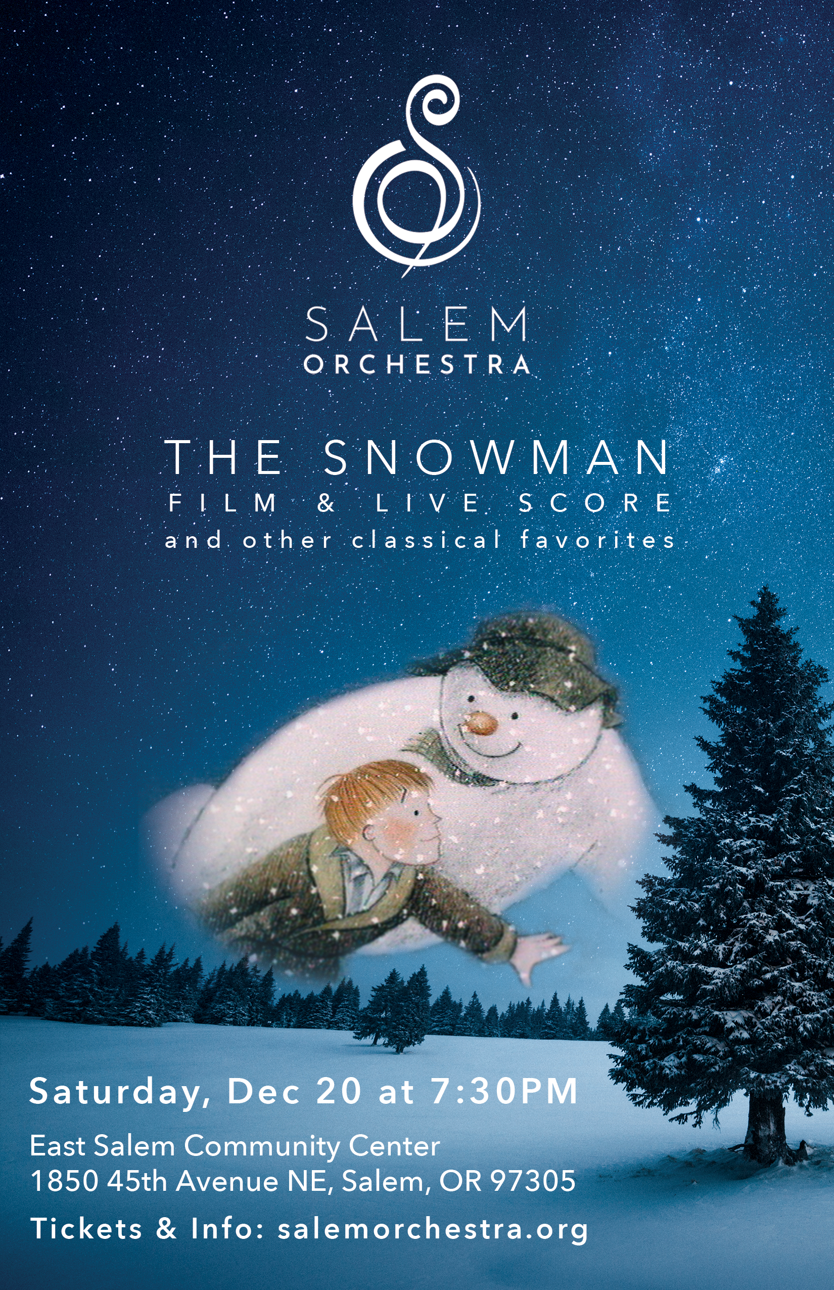 Join Salem Orchestra at our winter concert celebrating the holiday season. Enjoy watching the beloved animated classic, “The Snowman” as Salem Orchestra plays the entire score live. This festive and interactive event will be fun for the whole family. You don’t want to miss it!